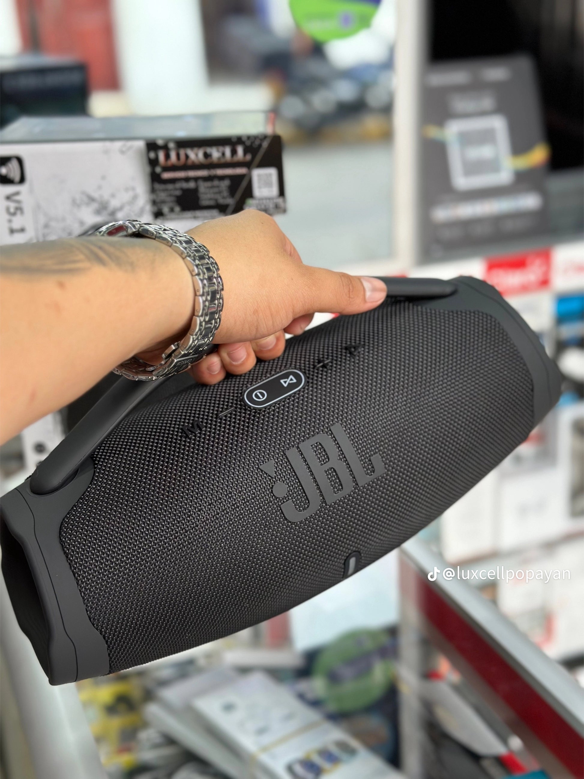 Design : Format "Boombox" robuste avec une poignée intégrée sur le dessus pour faciliter le transport.